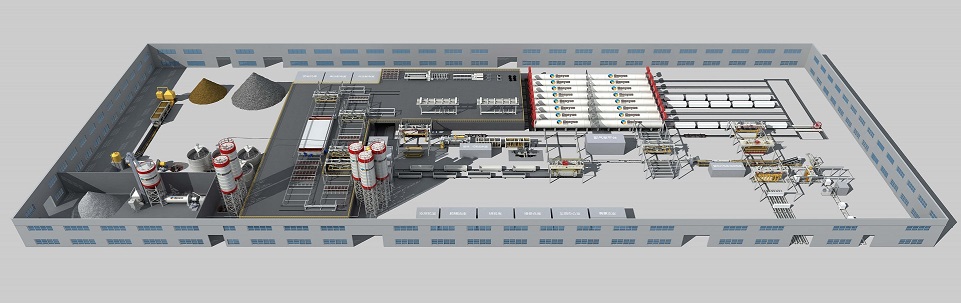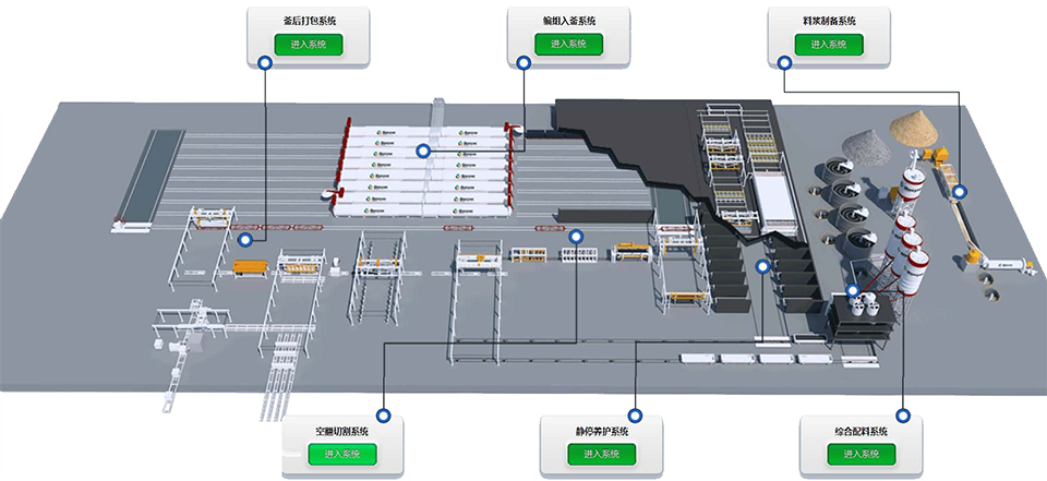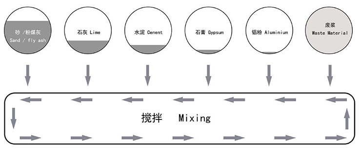 料漿、膠結(jié)料、石膏和鋁粉都分別通過相應自動計量稱計量,后在攪拌機內(nèi)高速攪拌,澆注到模箱后進行氣泡梳理。整個體系由 PLC 系統(tǒng)進行自動控制,保證工序的精確和高效。