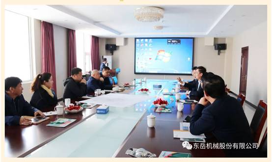 參觀后,公司副總裁鄧奎先生對東岳機械目前發(fā)展狀況、市場情況進行了詳細介紹,技術(shù)研發(fā)中心分別從工藝規(guī)劃布局、機械設(shè)計、電氣控制方面做出了詳細匯報。湖南飛山奇集團李林輝董事長、長樂建材陳時勇總經(jīng)理肯定了東岳機械近年高速發(fā)展的成果,希望雙方在未來有更加深入的合作!